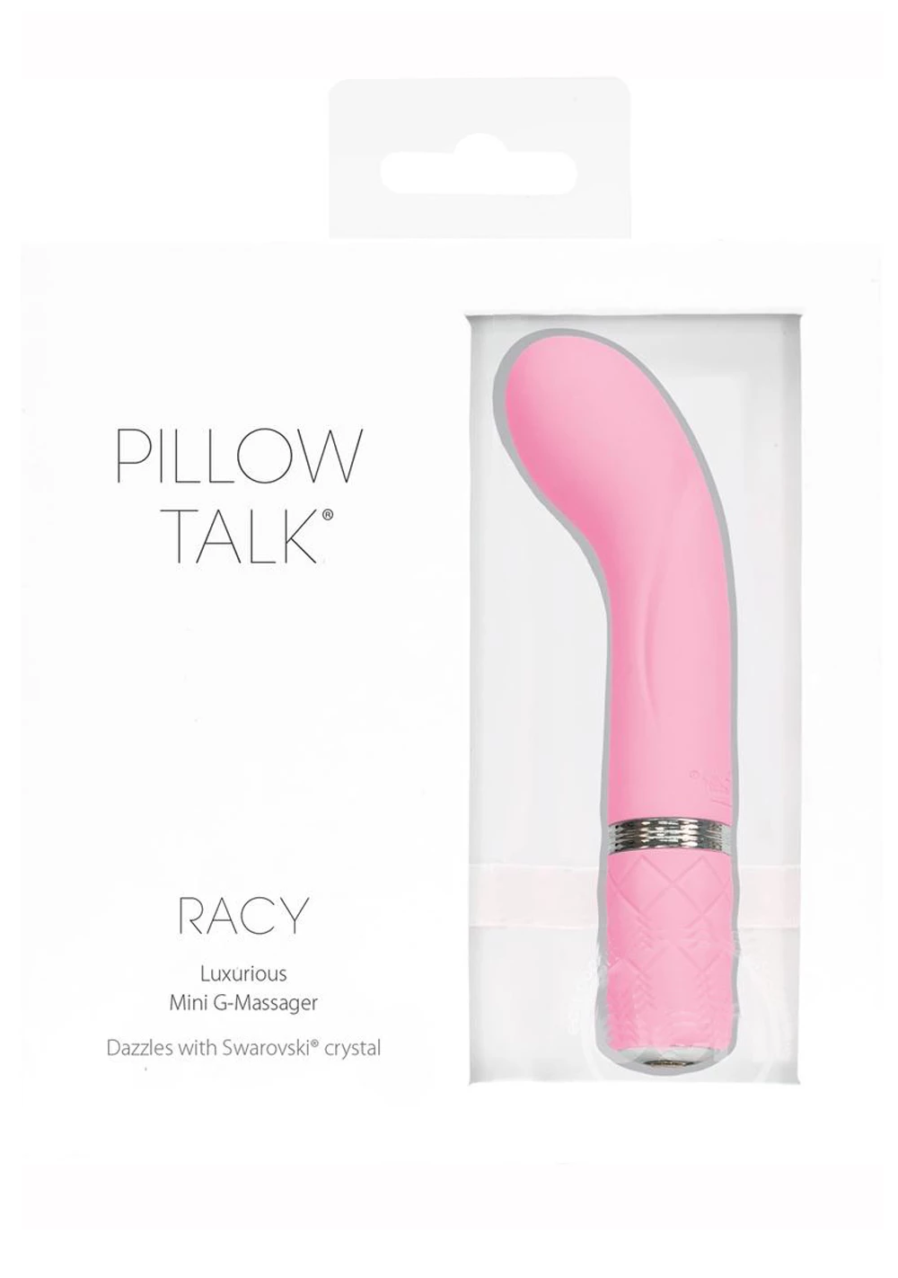 Racy by Pillow Talk offers unbelievable vibrations for external pleasure or G-spot stimulation. This vibrator is rechargeable and is conveniently compact for travel. With a quilted texture handle, silky finish and a dazzling Swarovski® crystal button, this flexible vibrator combines luxury and power in one.