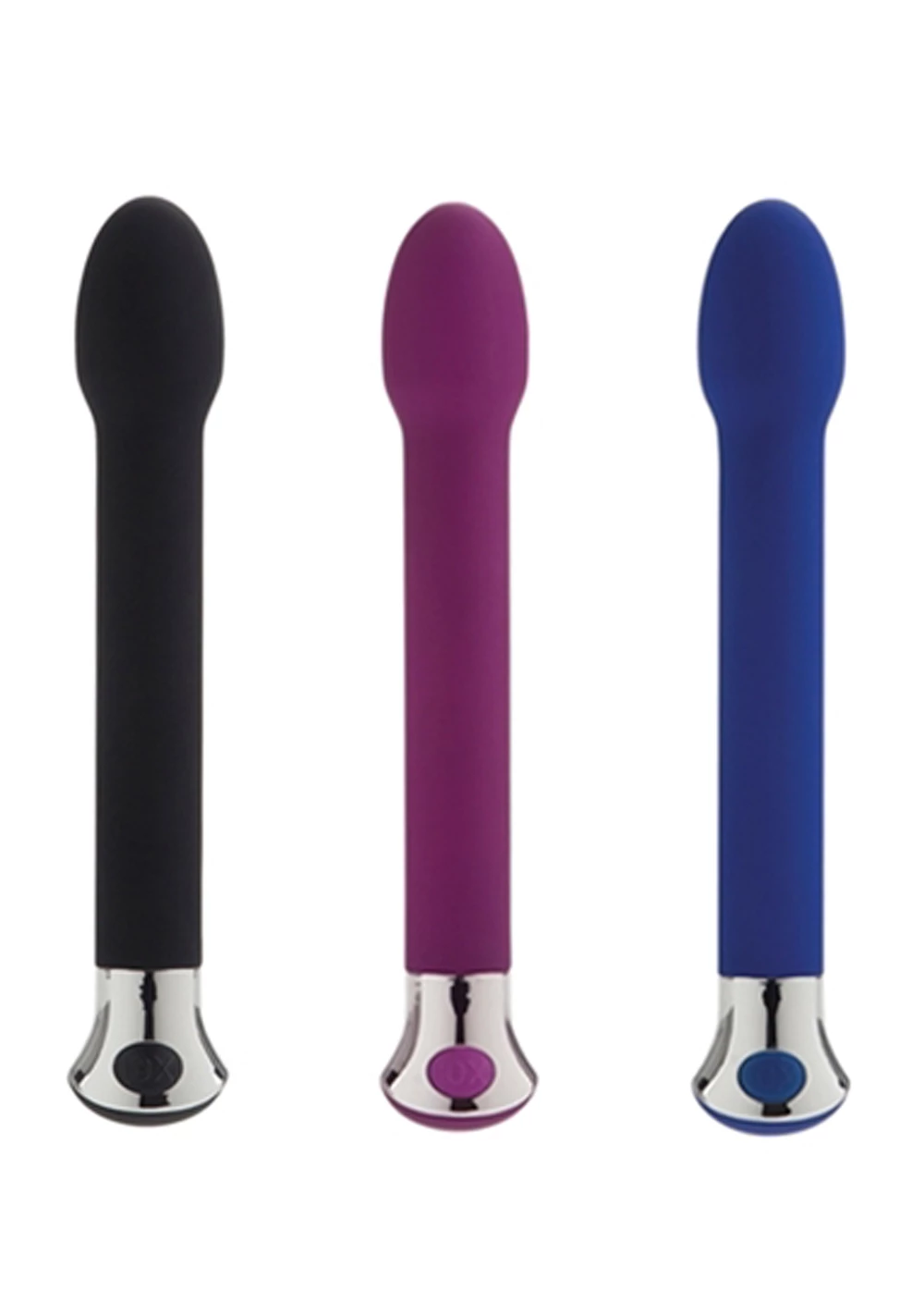 Seamless, sleek and super slim. 10 intense functions of vibration pulsation and escalation. State of the art chip resumes last function used. Requires 2 AAA Batteries (not included).