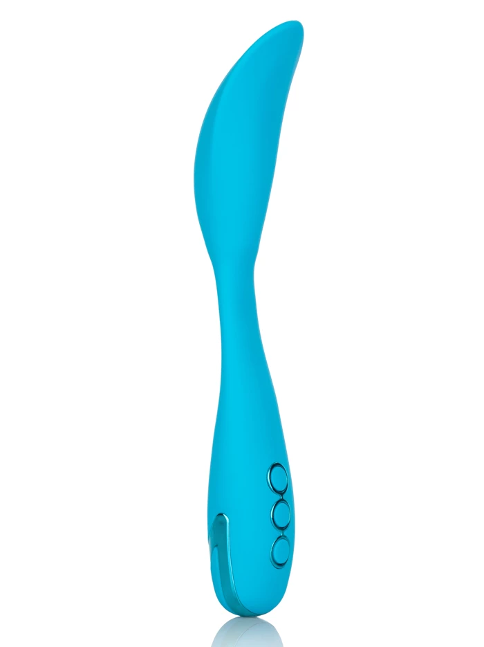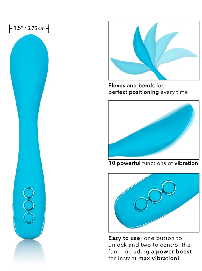 Versatile and curvaceous, this slimline vibrator has a flexible, contoured body that flexes and bends to offer external or internal stimulation. Designed for multi-directional positioning, it sports 100% play area–you can literally use any part of it for varying kinds of pleasure. Use the Pleaser to explore penis play, nipple teasing–anywhere on the body that targeted vibration feels good to you. Enjoy ten separate functions, plus a Power Boost that takes you directly to the highest level when you’re ready to blast off! Control your experience with three buttons: the top button turns vibe on and off, the middle allows you to scroll through functions while the bottom button brings you right to the Power Boost. Palm Springs Pleaser has a smart memory chip that resumes on the last setting used. USB rechargeable with self-sealing port.