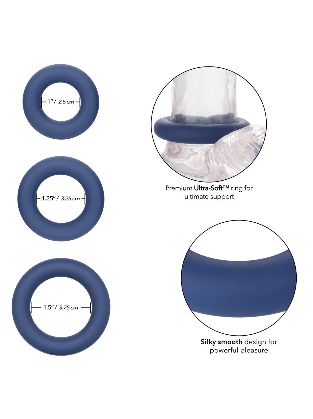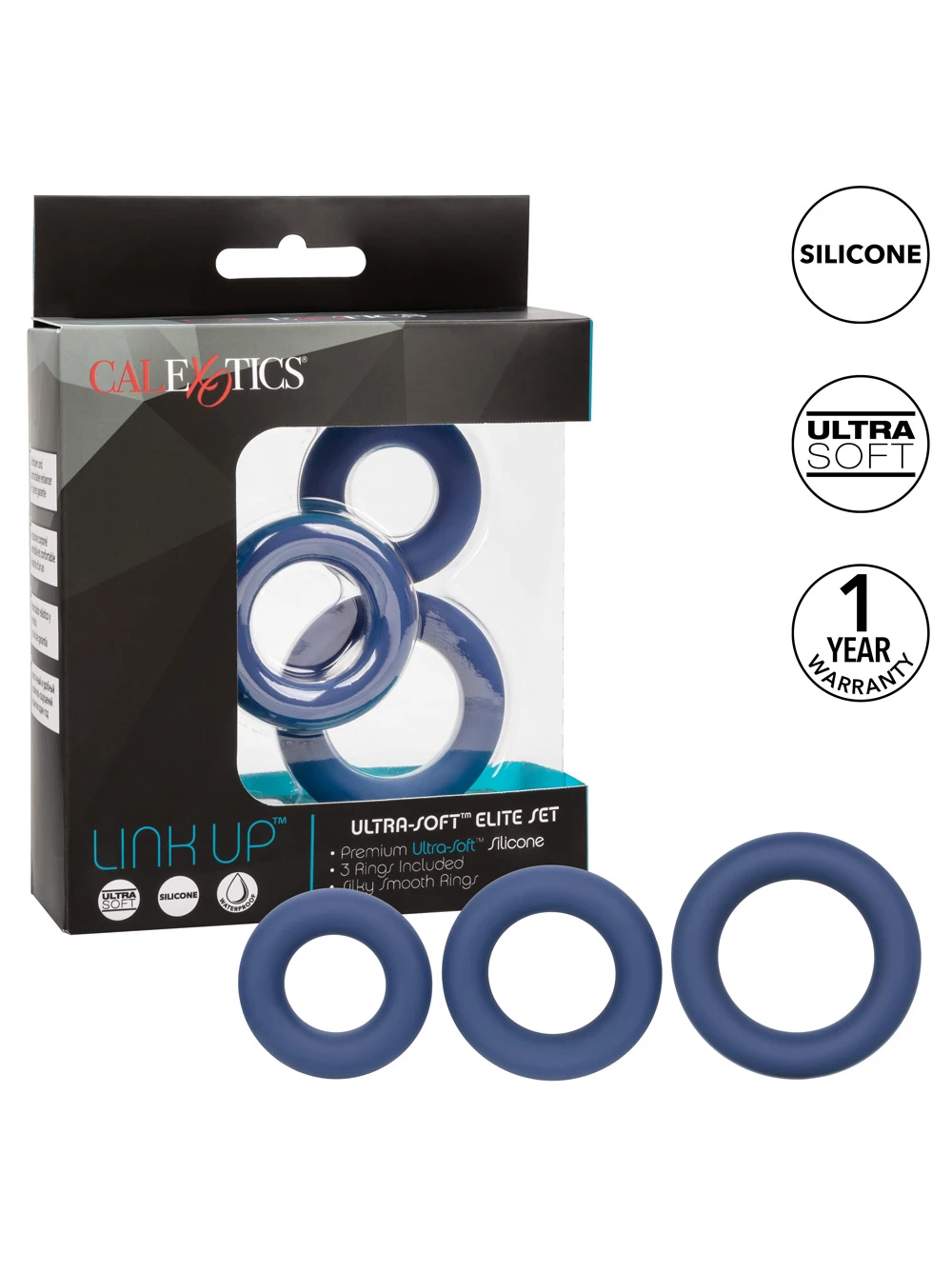 From bashful beginners to erotic experts, the Link Up™ Ultra-Soft™ Elite Set will wrap you up tight in pleasure with a graduated set of 3 ultra-plush, ultra-stretchy enhancer rings. Each cock ring in this gradually increased in size with a sleek smooth texture pattern for a sensational experience with every wear.
