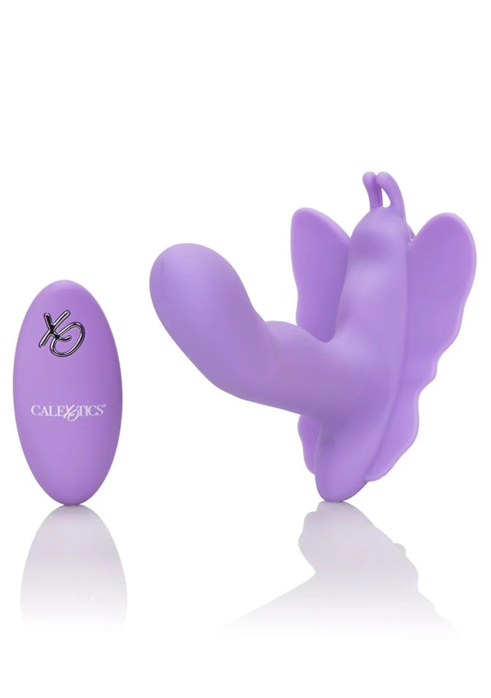 Prepare to be thrust into a world of full-contact stimulation with the Venus Butterfly Silicone Remote Venus “G”. The now world-famous Venus Butterfly collection has done it again with an intimately contoured shape, pliable G-spot Massager and 12 intense functions of vibration. Spread your wings and tease on-the-go with the ravishing remote control range of up to 32.5 feet (10m) away! While the sensually curved vibrator deliver knee-shaking G-spot stimulation, the contoured butterfly hugs close to your body for external teasing. To use with the remote, hold the push-button control for 3 seconds to turn on/off and use the XO button to cycle through 12 vibration, pulsation and escalation functions. While the easy-to-use vibe can be used with or without the remote to control the intensity, the integrated state of the art memory chip remembers just how you like it by starting on the last function used. Recharge the premium silicone massager in 70 minutes with the provided dual charging USB cable to enjoy 55 minutes of high-speed stimulation or 80 minutes of low speed vibrations. Massager will automatically turn over after 30 minutes of continuous use. The hypoallergenic premium silicone is body safe, unscented and phthalate free to keep you most sensitive spots, happy and healthy.