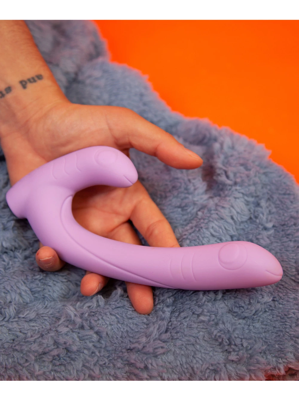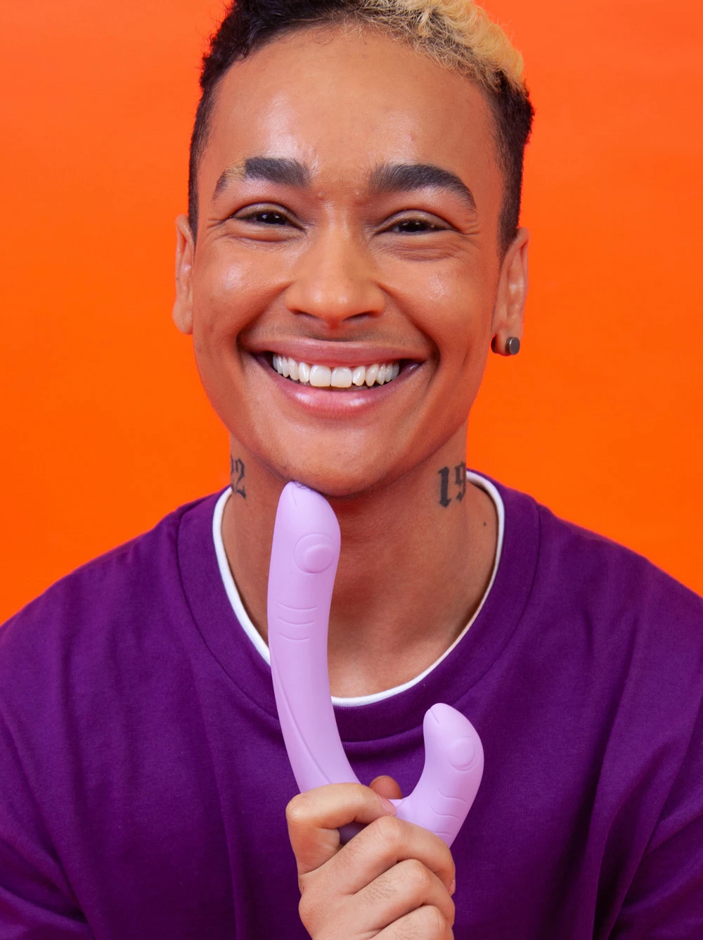 Jix comes from a planet of love and laughter, and they want to share that love! Jix is slender, making them as gentle on the body as they are pleasurable. Jix is thin enough to be a great beginner anal toy, tapered to work with the natural body curves. This dual-stim toy is great for providing multiple sensations at once; pleasure internally and externally at the same time, penetrate two openings simultaneously or easily have a partner hold the other end as an ergonomic handle. Jix is a loving and hard-working friend—its rechargeable, waterproof, interchangeable vibe provides 110 minutes of pleasure (with 5 speeds and 5 patterns) on a 70-minute charge.