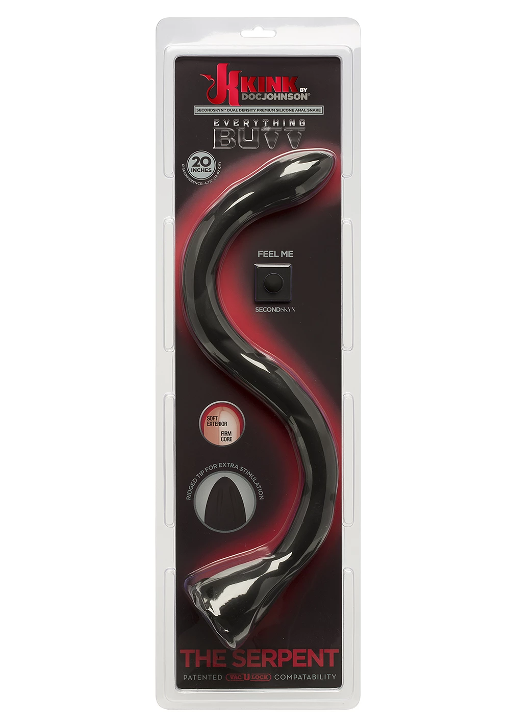 The Serpent from the Kink by Doc Johnson collection is crafted to please in dual density SECONDSKYN silicone, an enticingly soft, flexible silicone that yields to your touch and molds to fill your every need. Its narrow width is perfect for teasing or a fast push, while the extended length and thick bulbed tip are ideal for goal-setting and deep exploration for players who have conquered our In Deep Anal Snake. The soft, silky surface makes it easy to feed every inch into the receiving ass. Kink by Doc Johnson is an exciting collaboration with Kink.com to create a collection of high-quality authentic fetish items suitable for long-term practitioners and new initiates alike.