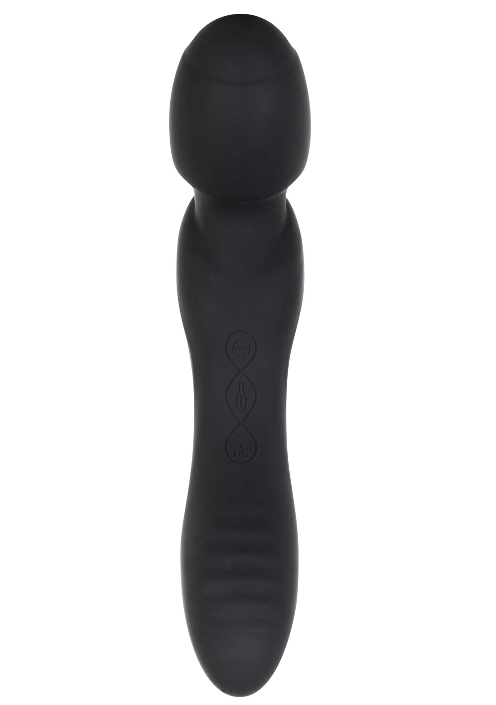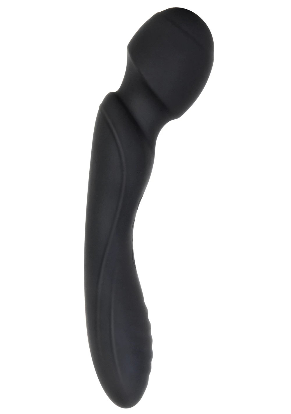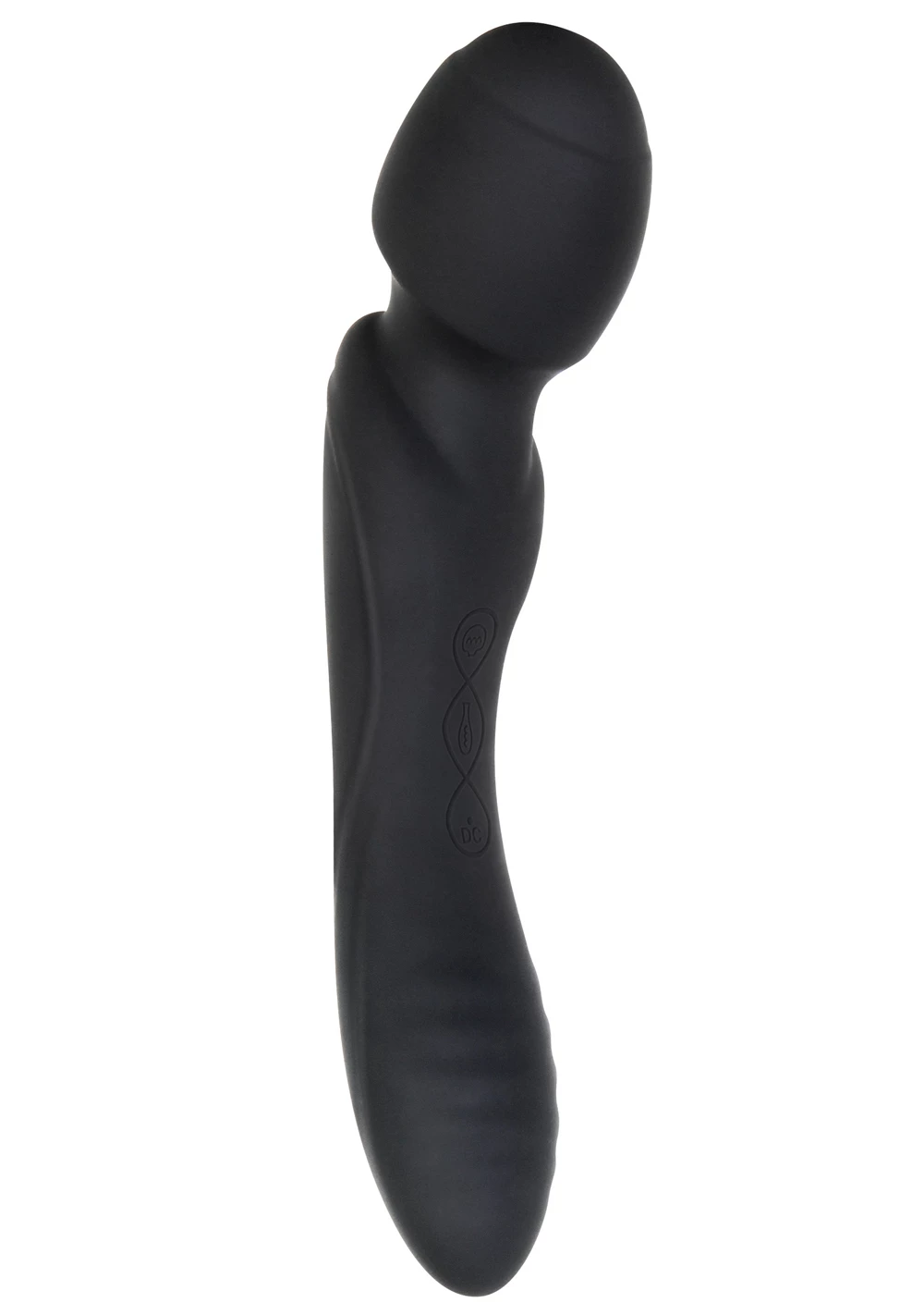 This unique silicone wand boasts a powerful wand massager on one end, and a satisfying bulbous and gently curved vibrator on the other. With elegant, easy access controls in the center, this double-sided shape rocks your world inside and out, with 2 powerful motors that offer 49 separate speed and function combinations in all! Fully waterproof, and submersible, it’s the perfect versatile bath companion that goes where ever you do. Made from luxuriously smooth body-safe Silicone material.
