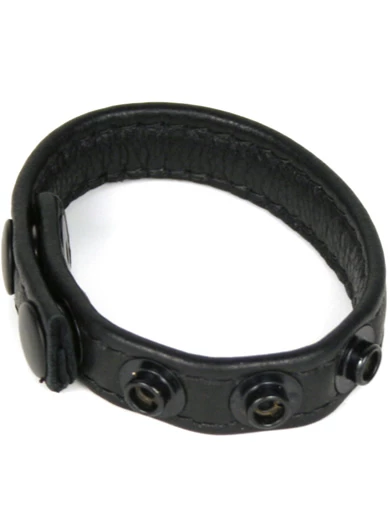 A classic sex accessory, this adjustable leather cock ring snaps around the shaft and testicles for a snug fit which many men love! Cock rings can intensify sensation, make erections firmer, and may prevent the penis from going soft before you want it to — and they look sexy on, too. Easy to remove and adjust quickly should the pressure become uncomfortable. We recommend cock rings be worn for no more than 20 minutes at a time on an erect penis, though on a non-erect cock, a longer duration of wear is OK.